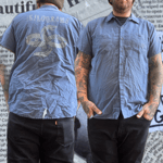 we got our hands on a bunch of used work shirts (they are clean, I swear!) and printed the OG snake on the back.